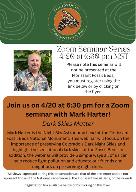 Dark Skies Matter – Zoom Seminar Series Posted on April 16, 2026 by The Friends of the Florissant Fossil Beds, Inc. Seminar Link